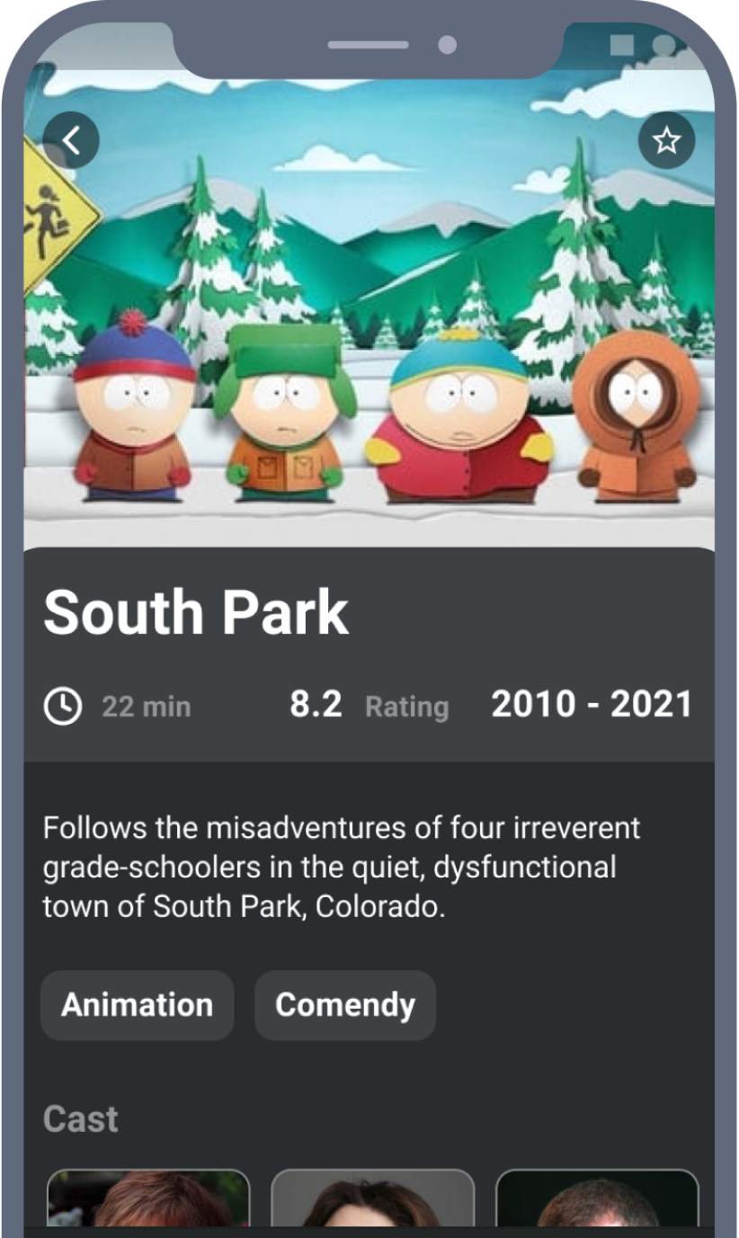 В выпускном проекте воспользуемся наработками из предыдущих занятий. Создадим приложение с зоной авторизации, информацией про популярные фильмы и сериалы. Добавим возможность сохранять избранные фильмы, сериалы или людей в избранное. Внедрим нижнюю навигацию для удобного переключения между контекстами. Сверстаем сложные экраны с большим количеством визуальных элементов и информации.
